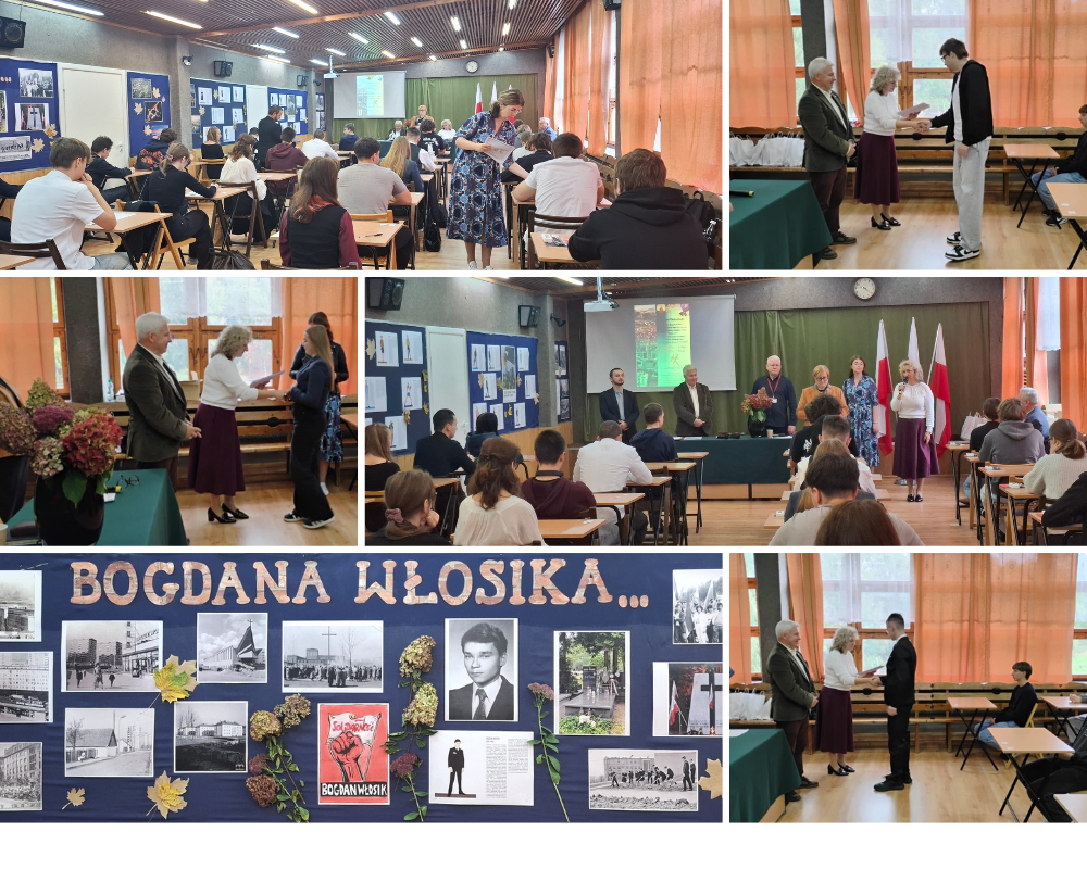 We wtorek 7 października w naszej Szkole miał miejsce I etap konkursu „Historia Bogdana Włosika i jego nowohuckiej Małej Ojczyzny oraz Komisji Robotniczej Hutników NSZZ Solidarność – z okazji XXVIII Biegu Memoriałowego im. Bogdana Włosika, 75-lecia rozpoczęcia budowy Kombinatu Metalurgicznego oraz 65-lecia obrony Krzyża w Nowej Hucie”. Organizatorami konkursu jest Komisja Robotnicza Hutników NSZZ „Solidarność” oraz Zespół Szkół Zawodowych Huty im. Tadeusza Sendzimira. W konkursie wzięli udział uczniowie i uczennice z siedmiu nowohuckich szkół. Wydarzenie rozpoczęło się o godzinie 9.15 od powitania uczestników konkursu, ich opiekunów oraz przedstawicieli Komisji Robotniczej Hutników przez Panią Dyrektor Iwonę Słapek oraz Przewodniczącą Komisji Konkursowej Panią Ewę Dybaś.