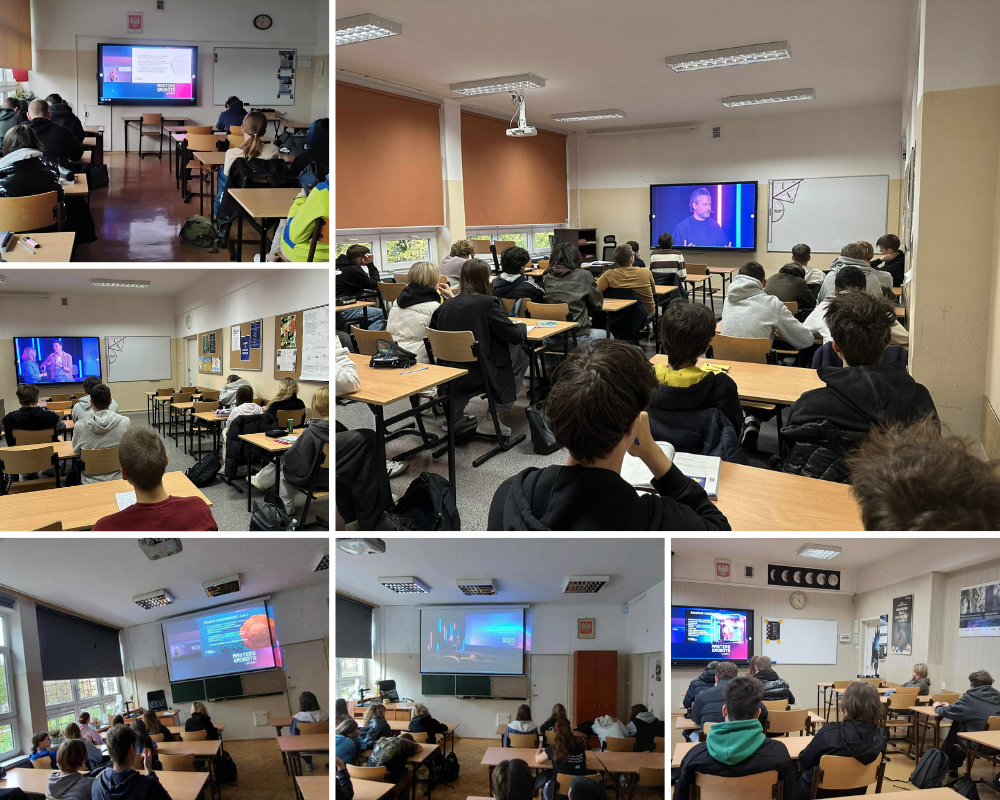 Przyszłość zaczyna się dziś! 24 października młodzież naszej szkoły: uczniowie Technikum, Liceum oraz Branżowej Szkoły I Stopnia wzięli udział w 6. edycji Masters & Robots Youth – wyjątkowym wydarzeniu poświęconym przyszłości kompetencji i rynku pracy, zorganizowanym przez Fundację Digital University. Podczas inspirujących prelekcji uczestnicy poznali m.in. odpowiedzi na pytania: How not be afraid of the future? Jakie kompetencje otworzą Ci drzwi do kariery? Czego dziś szukają pracodawcy jutra? To była solidna dawka wiedzy, motywacji i refleksji o tym, jak budować swoją przyszłość już teraz. Przyszłość młodego pokolenia zaczyna się dziś!