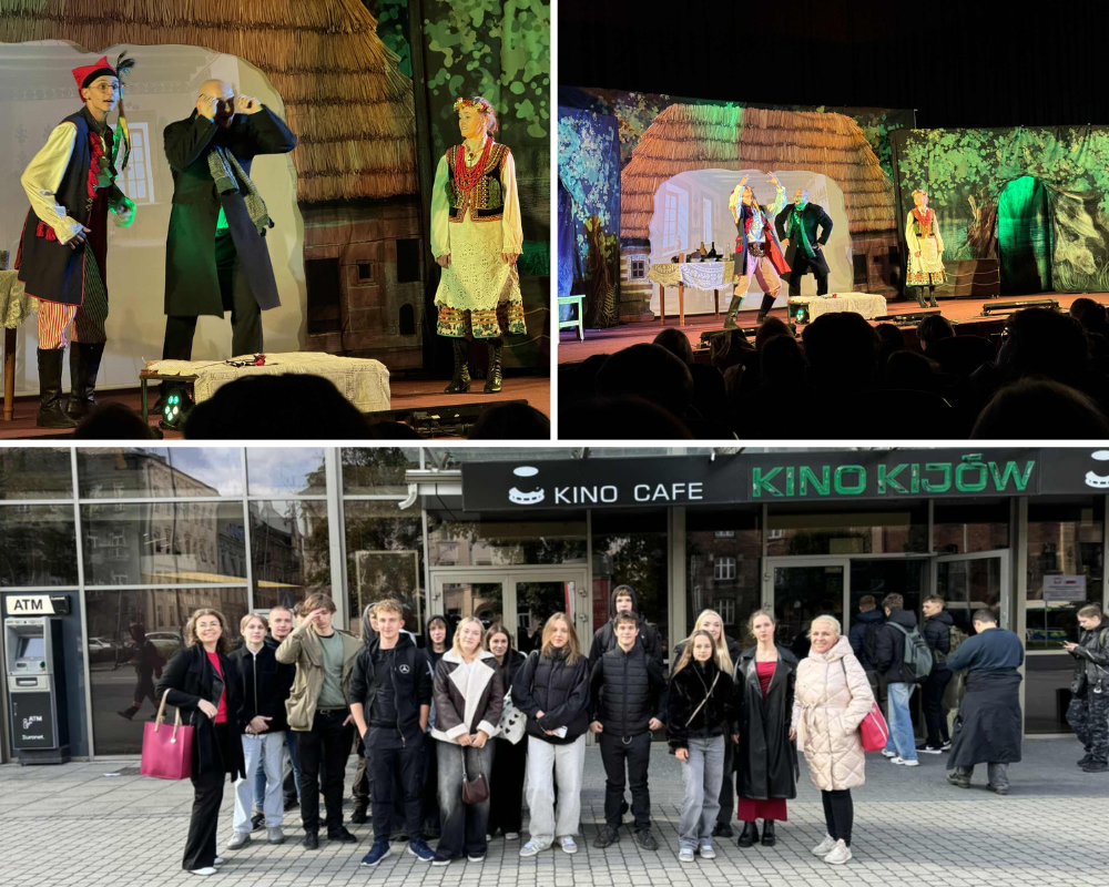 W dniu 2 października 2025 roku uczniowie klas 3La, 3Lb i 3Lc mieli okazję uczestniczyć w wyjątkowym wydarzeniu kulturalnym – spektaklu teatralnym pt. Wesele w wykonaniu utalentowanego zespołu aktorskiego na scenie kina Kijów w Krakowie. Adaptacja jednego z najważniejszych dzieł polskiej literatury – dramatu Stanisława Wyspiańskiego – zachwyciła młodzież swoją barwnością, wyrazistą scenografią oraz bogactwem kostiumów, które oddawały klimat przełomu XIX i XX wieku.