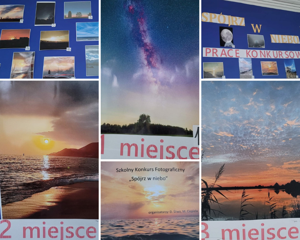 „Spójrz w niebo” to szkolny Konkurs fotograficzny, który zakończył się w Naszej szkole przed feriami. Spotkał się z dużym zainteresowaniem o czym świadczą piękne i oryginalne zdjęcia. Spośród 30 prac wyłoniła młodzież najlepsze prace: